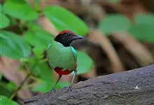 绿胸八色鸫:是雀形目八色鸫科的鸟类,共有12个亚种。体长为16-18厘米,体重65-69克。体型圆胖,尾短,腿长。头黑,上体绿色,两翼深色而具白色斑纹,头顶至后枕深褐,胸及腹部苹果绿,臀亮红。…全部>>