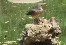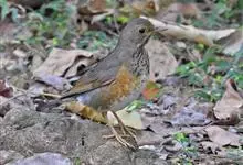 赤颈鸫是鸫科、鸫属中型鸟类,体长22-25厘米。上体灰褐色,有窄的栗色眉纹。颏、喉、上胸红褐色,腹至尾下覆羽白色,腋羽和翼下覆羽橙棕色。虹膜暗褐色,嘴黑褐色,下嘴基部黄色,脚黄褐色或暗褐色。…全部>>