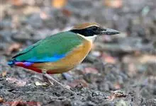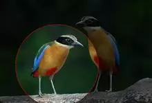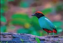 蓝翅八色鸫是雀形目八色鸫科的鸟类。体长17-20厘米,体重类约48-70克,体型圆胖,尾短,腿长,以身体具有红、绿、蓝、白、黑、黄、褐、栗等鲜艳夺目,丰富艳丽的色彩而得名,是很有观赏价值的鸟类。主要…全部>>