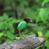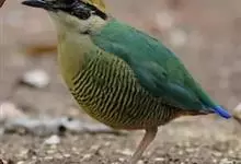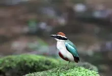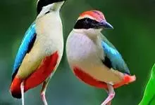 绿胸八色鸫:是雀形目八色鸫科的鸟类,共有12个亚种。体长为16-18厘米,体重65-69克。体型圆胖,尾短,腿长。头黑,上体绿色,两翼深色而具白色斑纹,头顶至后枕深褐,胸及腹部苹果绿,臀亮红。…全部>>