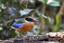 栗头八色鸫又叫锅巴雀,体长为24-26厘米,体重100-135克,是雀形目八色鸫科的鸟类。体型圆胖,尾短,腿长,常在森林底层或低植被中找食无脊椎动物。叫声简单哀婉。…全部>>