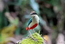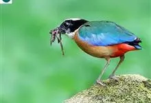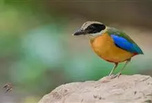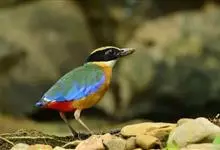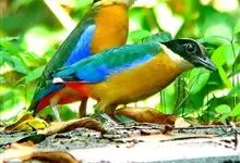 蓝翅八色鸫是雀形目八色鸫科的鸟类。体长17-20厘米,体重类约48-70克,体型圆胖,尾短,腿长,以身体具有红、绿、蓝、白、黑、黄、褐、栗等鲜艳夺目,丰富艳丽的色彩而得名,是很有观赏价值的鸟类。主要…全部>>