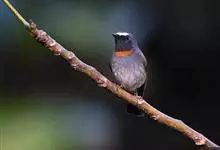 橙胸姬鹟:体长12-16厘米,是一种体型略小的林栖型鹟。尾黑而基部白,上体橄榄褐色,额具一白色横带,两端向上延伸至眼上形成眉斑。翼橄榄色,下体灰。成年雄鸟额上有狭窄白色并具小的深红色项纹,常不明显。…全部>>