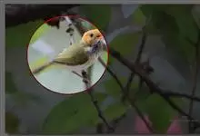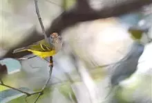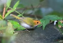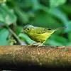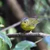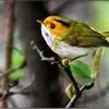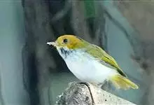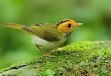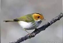 黑脸鹟莺:体长10厘米,是有特色的体小而多彩的莺鸟。粗眉纹,颏、喉及尾下覆羽黄色,脸罩黑,头顶及颈背灰色,上体绿,无翼纹,腹白。虹膜褐色;上嘴色深,下嘴肉色;脚偏绿色。…全部>>