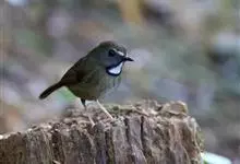 白喉姬鹟:体长11-13厘米,是一种体型小的橄榄褐色鹟。特征为颏及喉白色且成胸兜,缘以黑色的髭纹及项纹。上体红褐色,前额和一相连的短的眉纹白色,眼先、耳覆羽和头侧灰褐色而杂白色,颏、喉白色,…全部>>