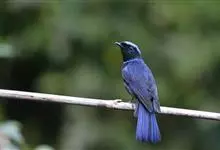 大仙鹟:体重34-38克,体长20-2厘米。是一种体型较大的深色鹟。雄鸟上体蓝色,头顶、颈侧条纹、肩块及腰部辉蓝,下体黑色。雌鸟橄榄褐色,头顶蓝灰,颈侧具闪辉浅蓝色块,喉具皮黄色三角形块斑。…全部>>