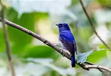 棕腹大仙鹟:体重24-28克,体长15-17厘米,是一种小型的色彩亮丽的鹟。雄鸟上体深蓝,下体棕色,脸黑,额、颈侧小块斑、翼角及腰部亮丽闪辉蓝色。与棕腹仙鹟易混淆,区别在色彩较暗。雌鸟灰褐,…全部>>