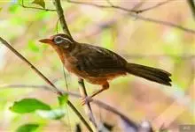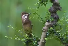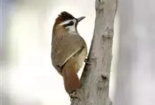 白颊噪鹛是雀形目噪鹛科噪鹛属鸟类,又称土画眉、小画眉、小噪鹃。成鸟额至头顶栗褐色,长眉纹、眼先和颊纹棕白色,眼后至耳羽深褐色,…全部>>