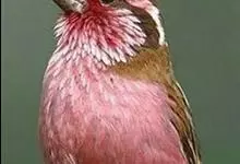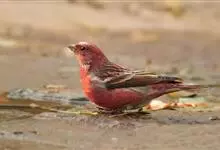 藏朱雀:全长约17-18厘米。雄鸟头部深红色具光辉,喉部暗红色具白色点斑;背部灰白色,各羽具玫瑰红色羽端,形成许多斑纹;腰部淡玫瑰红色;翅暗褐色,沾灰白,羽端沾玫瑰红或灰白色;尾暗棕色,端缘玫瑰红色…全部>>