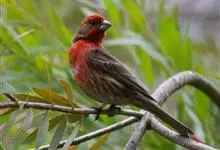 普通朱雀是雀形目雀科朱雀属鸟类,又名红朱雀、马料、青麻料。雄鸟上体红色,下体淡红色;头部、喉部、胸部及腰部亮红色;背部褐色染红色;两翼及尾黑褐色,羽缘染红色。雌鸟上体橄榄褐色,下体近白色,…全部>>