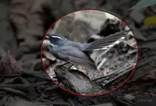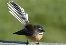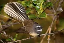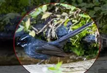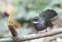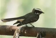 白眉扇尾鹟:体长17厘米,是一种中等体型的灰色扇尾鹟。色彩独特。宽宽的眉纹及前额白色,尾有白色宽边。髭纹白色,与黑色的脸及喉成对比;尾呈扇形,4对中央尾羽黑褐色,邻近两对具宽的白色端斑,最外侧两对白…全部>>