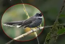 白喉扇尾鹟:是鸟纲、扇尾鹟科的小型鸟类,体重9-14克,体长151-202毫米。通体黑灰色,头部较暗近黑色,颏、喉、眉纹白色,在暗色的头部极为醒目。下体深灰而有别于白眉扇尾鹟,但有个别个体下体色浅。…全部>>