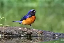 棕腹大仙鹟:体重24-28克,体长15-17厘米,是一种小型的色彩亮丽的鹟。雄鸟上体深蓝,下体棕色,脸黑,额、颈侧小块斑、翼角及腰部亮丽闪辉蓝色。与棕腹仙鹟易混淆,区别在色彩较暗。雌鸟灰褐,…全部>>