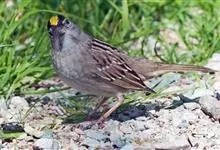 黑顶麻雀:为雀科麻雀属的鸟类。体重24-35克,体长144-167毫米,是一种中等体型的麻雀。繁殖期雄鸟头顶有黑色的冠顶纹至颈背,眼纹及颏黑,眉纹及枕侧棕褐,脸颊浅灰。上体褐色而密布黑色纵纹。…全部>>