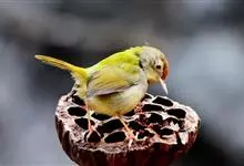 普通缝叶莺,是雀形目鹅科莺亚科缝叶莺属一种。体长10-14厘米,体重7-10克,雄鸟前额棕红,头顶至枕棕橄榄褐,上体橄榄绿染黄,飞羽及尾羽暗褐;繁殖期雄鸟的中央尾羽特形延长,下体淡皮黄白色。…全部>>