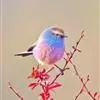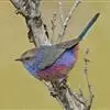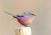 凤头雀莺:小型鸟类。体长9-10厘米,雄鸟呈毛茸茸的紫色和绛紫色,顶冠淡紫灰色,额及凤头白色,尾全蓝。雌鸟喉及上胸白,至臀部渐变成淡紫色,耳羽灰,…全部>>
