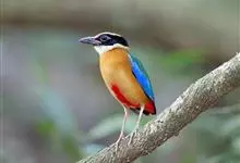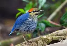 蓝翅八色鸫是雀形目八色鸫科的鸟类。体长17-20厘米,体重类约48-70克,体型圆胖,尾短,腿长,以身体具有红、绿、蓝、白、黑、黄、褐、栗等鲜艳夺目,丰富艳丽的色彩而得名,是很有观赏价值的鸟类。主要…全部>>