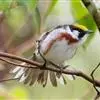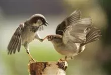 家麻雀:共有13个亚种。是小型鸟类,体长14-16厘米。背栗红色具黑色纵纹,两侧具皮黄色纵纹;颏、喉和上胸黑色,脸颊白色,其余下体白色,翅上具白色带斑。雄鸟与树麻雀的区别在顶冠及尾上覆羽灰色,耳无黑…全部>>