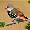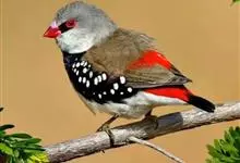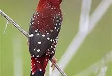 红梅花雀小型鸟类,体长9-10厘米。雄鸟通体朱红色,背、肩、胸等满布白色小斑点,两翅和尾黑褐色均具白色端斑,嘴红色,脚蜡黄色。雌鸟上体淡褐色或赭褐色,翅上中覆羽、大覆羽和内侧飞羽末端具白色斑点,…全部>>