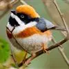 喜马拉雅白眉朱雀:小型鸟类,体长15-17厘米,体重24-35克。额基、眼先深红色,前额和一条长而宽阔的眉纹珠白色沾有粉红色并具丝娟光泽,在暗色的头部极为醒目。头顶至背棕褐或红褐色、具黑褐色羽干纹,…全部>>