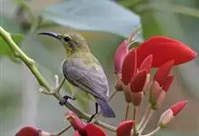 吸蜜鸟科Meliphagiae由吸蜜鸟和澳组成,非洲南部的食蜜鸟则被排除出了本科。吸蜜鸟科种类繁多,形态多样,多数嘴细长而弯曲,舌能伸缩,尖端呈刷毛状,用以吸取花蜜,羽毛多呈华丽色彩,尾形多样,…全部>>