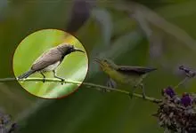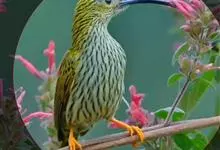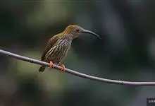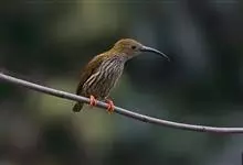 纹背捕蛛鸟:为太阳鸟科捕蛛鸟属的鸟类。是太阳鸟科中体型较大的一种,体重25-45克,体长160-210毫米。嘴粗长而尖且向下弯曲。上体橄榄黄色具黑色中央斑纹。下体淡黄白色满布黑色纵纹,尾具黑色次端斑。…全部>>