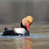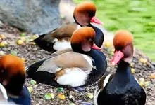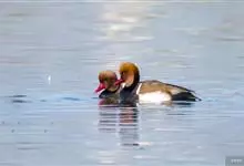 赤嘴潜鸭俗称大红头,是大型鸭类,个体比绿头鸭小,体长45-55厘米,体重1千克左右。雄鸟头浓栗色,具淡棕黄色羽冠。上体暗褐色,翼镜白色,嘴赤红色。下体黑色,两胁白色,特征极明显,野外容易辨别。…全部>>
