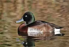 青头潜鸭,是雁形目鸭科潜鸭属的迁徙性鸟类。雄性头部和颈部为黑色,有绿色光泽,上体为黑褐色,尾下和翼下覆羽为白色。雌性头部和颈部为黑褐色,腹部以白色羽毛为主,两翅、腰和尾上尾下覆羽与雄性基本相同。…全部>>