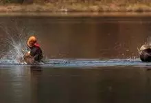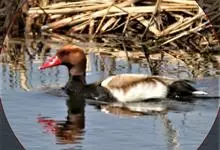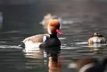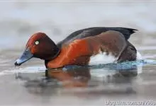 赤嘴潜鸭俗称大红头,是大型鸭类,个体比绿头鸭小,体长45-55厘米,体重1千克左右。雄鸟头浓栗色,具淡棕黄色羽冠。上体暗褐色,翼镜白色,嘴赤红色。下体黑色,两胁白色,特征极明显,野外容易辨别。…全部>>