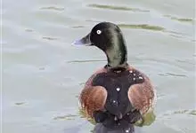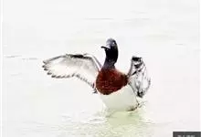 白眼潜鸭属中型潜鸭,个体比红头潜鸭小,和凤头潜鸭差不多。体长33-43厘米,体重0.5千克以上不到1千克。雄鸟头、颈、胸暗栗色,颈基部有一不明显的黑褐色领环;眼白色,上体暗褐色,上腹和尾下覆羽白色,…全部>>