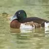 青头潜鸭,是雁形目鸭科潜鸭属的迁徙性鸟类。雄性头部和颈部为黑色,有绿色光泽,上体为黑褐色,尾下和翼下覆羽为白色。雌性头部和颈部为黑褐色,腹部以白色羽毛为主,两翅、腰和尾上尾下覆羽与雄性基本相同。…全部>>