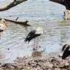 白鹳,是鹳形目鹳科鹳属鸟类。白鹳曾确定为3个亚种:指名亚种、中亚亚种和东方亚种。其体长约111厘米。嘴形直、粗厚而侧扁;体羽除飞羽黑色具铜绿色金属光泽外,余部均为白色;眼周裸区、脚、趾红色,嘴黑色。…全部>>
