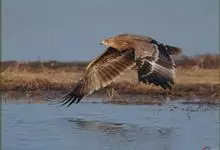 白肩雕:又名御雕,是大型猛禽。体长73-84厘米。体羽黑褐色,头和颈较淡,肩部有明显的白斑,在黑褐色的体羽上极为醒目,很远即可看见,这是区别其他雕的主要特征。滑翔时两翅平直,滑翔和翱翔时两翅亦不上举…全部>>