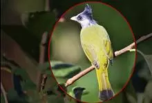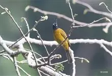 黑冠黄鹎:体长18-21厘米,是一种中等体型偏黄色鹎。整个头、颈、颏、喉黑色,头顶有显著直立的羽冠,黑色,上体褐橄榄黄绿色,下体橄榄黄色。虹膜偏红;嘴及脚黑色。…全部>>