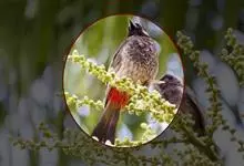 黄臀鹎,又称黄屁屁,是雀形目鹎科鹎属鸟类。成鸟额、头顶至枕部黑色,无明显冠羽,眼先和眼周亦为黑色,耳羽灰褐色,上体土褐色,尾暗褐色具不明显横斑,翼暗褐色,飞羽具淡色羽缘;下体颏、喉白色,…全部>>