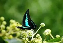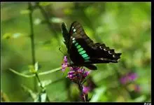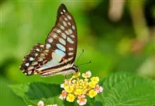 青带凤蝶Graphium sarpedon ,又名青凤蝶,是最普遍的中型凤蝶,飞行速度很快。青带凤蝶的翅膀中央有许多浅蓝色的斑点,很整齐地排列成一条直线。这些斑点由上而下逐渐变大,就像一条青色的带子。全部>>