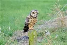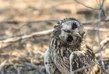 短耳鸮又名小耳木兔、田猫王、夜猫子等,是鸮形目鸱鸮科耳鸮属中小型猛禽动物。成鸟面盘显著,眼周黑色;眼先及内侧眉纹灰白色,面盘余部棕黄色杂以黑色细羽干纹;耳簇羽短小而几乎不外露,…全部>>