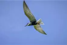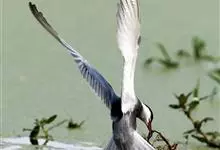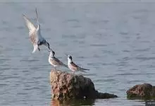 普通燕鸥是鸥科、燕鸥属下的一种迁徙夏候鸟。体型略小,约35厘米。头顶部黑色,背、肩和翅上覆羽鼠灰色或蓝灰色。颈、腰、尾上覆羽和尾白色。外侧尾羽延长,外侧黑色。下体白色,胸、腹沾葡萄灰褐色。…全部>>