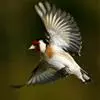 红额金翅雀:共有14个亚种。小型鸟类,体长12-14厘米。额、脸颊和颏朱红色,眼先和眼周黑色,在淡色的头部极为醒目。上体灰褐或乌褐色,尾上覆羽白色,两翅和尾黑色,翅上有黄色斑。下体喉、胸灰褐或乌褐色…全部>>