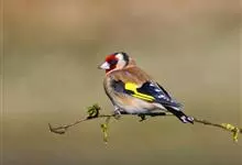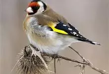 红额金翅雀:共有14个亚种。小型鸟类,体长12-14厘米。额、脸颊和颏朱红色,眼先和眼周黑色,在淡色的头部极为醒目。上体灰褐或乌褐色,尾上覆羽白色,两翅和尾黑色,翅上有黄色斑。下体喉、胸灰褐或乌褐色…全部>>