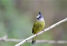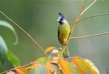 凤头雀嘴鹎:属小型鸟类,体长18-22厘米。嘴粗短、呈象牙色或乳黄色,前额和脸灰色,头顶黑色,有一朝前竖立的黑色羽冠。上体橄榄绿色,下体黄绿色,尾羽黄绿色具宽阔的黑褐色端斑。…全部>>