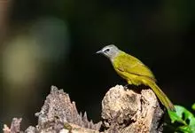 黄绿鹎,小型鸟类,体长19-22厘米。额至头顶暗褐具灰色羽缘,眼先黑色,其上面有一粗著的白纹从鼻后至眼,在黑色的头部极为醒目。上体橄榄绿褐色。颏、喉淡灰色或灰白色,胸灰褐色具橄榄黄色羽缘,…全部>>
