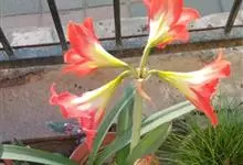 花朱顶红 Herb.),是石蒜科、朱顶红属 多年生草本。鳞茎大,球形,直径5-7.5厘米。叶6-8枚,常花后抽出,鲜绿色,带形,长30-40厘米,宽2-6厘米;花茎高50-70厘米;伞形花序,常有花…全部>>