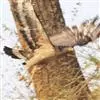 短趾雕:体长62-70厘米,体重1.2-2.3千克。它们的颔、颈和胸部上方呈浅棕色。头部浑圆像猫头鹰般,眼睛呈鲜黄色。身体沉重,上体灰褐,下体白而具深色纵纹,喉及胸单一褐色,腹部具不明显的横斑,…全部>>
