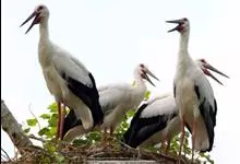 白鹳,是鹳形目鹳科鹳属鸟类。白鹳曾确定为3个亚种:指名亚种、中亚亚种和东方亚种。其体长约111厘米。嘴形直、粗厚而侧扁;体羽除飞羽黑色具铜绿色金属光泽外,余部均为白色;眼周裸区、脚、趾红色,嘴黑色。…全部>>
