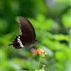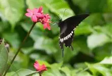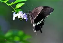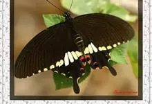 玉斑凤蝶Papilio helenus 别名白纹凤蝶,是凤蝶科凤蝶属美凤蝶亚属大型种类。雌雄同型;体翅皆黑色,后翅正面中室外有3个并列的白色斑,亚外缘有1列模糊的新月形红色斑,…全部>>