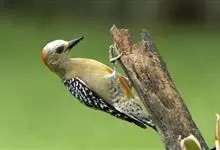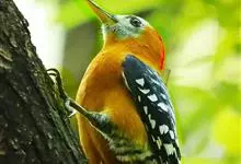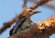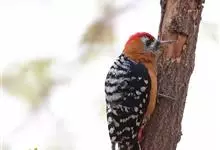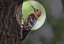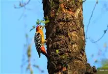 棕腹啄木鸟为啄木鸟科,啄木鸟属是中等体型的鸟类,体长约20厘米。头顶部具红色斑带。脚强健,有趾4个,其中2个向前,2个向后,各趾的趾端均具有锐利的爪,巧于攀登树木。尾羽的羽干刚硬如棘,…全部>>