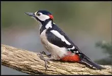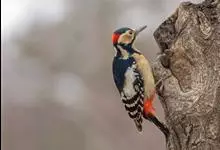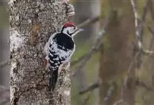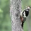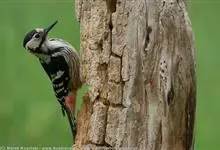 小斑啄木鸟,是啄木鸟科、啄木鸟属的小型鸟类,体长14-18厘米。额和颊白色,头顶雄鸟红色,雌鸟黑色。后颈至上背黑色,下背白色而具黑色横斑。两翅黑色具白色横斑。尾黑色,外侧尾羽具白色横斑。下体灰白色,…全部>>