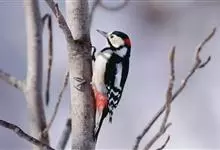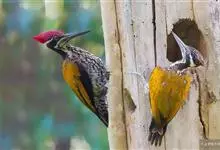 白背啄木鸟共有10个亚种。中等体型,体长25厘米。特征为下背白色,无论雌雄均臀部红色。脚强健,有趾4个,其中2个向前,2个向后,各趾的趾端均具有锐利的爪,巧于攀登树木。尾羽的羽干刚硬如棘,…全部>>