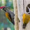 三趾啄木鸟,是啄木鸟科、啄木鸟属的小型鸟类,体长20-23厘米,雄鸟头顶金黄色,雌鸟黑色而具白色斑点。眼至耳覆羽黑色,眼后有一条白色纵纹,颊纹白色,颚纹黑色,甚为醒目。枕和后颈黑色,…全部>>